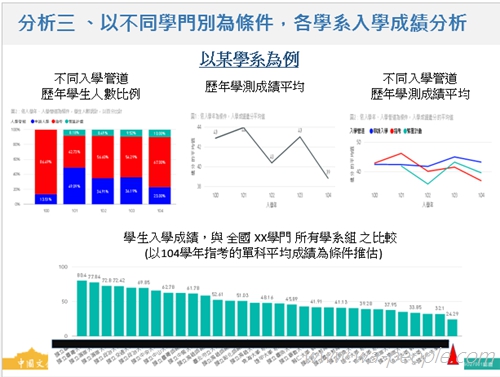 面對少子化、全球化的趨勢,招生及校務議題的管理與決策,成為全台158所大專院校的挑戰,更是各院校永續經營的關鍵。增進系統化地了解校務議題,及提升學生的學習成效,中國文化大學於今年三月率先號召8間大專院校:實踐大學、大同大學、台北海洋技術學院、台北商業大學、台北護理健康大學、東華大學、桃園創新技術學院等,成立「校務研究議題合作聯盟」,將「提升大學生的學習成效」列為共通議題進行研究分析,中國文化大學運用微軟分析工具Power BI與SQL Server資料庫平台,利用三個月完成了大一學生人數分析與預測、不同入學管道之入學分析、各學系入學成績分析、學生休學到退學可能因素分析、生源及未持續就讀原因分析等五大分析模組,是年十月分享共同研究成果,透過SharePoint Server與聯盟各校分享研究方法與模組,縮短各校的研究與分析時程。