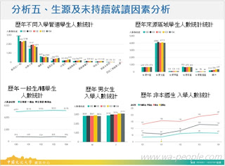 隨著大專院校的增加及少子化的衝擊,教育部推估國內大學入學人數將從105年度的25.2萬人,驟降至117年度的15.6萬人,同時面臨世界各國積極跨國招生,台灣各大專院校招生更加艱困。為了永續經營,除了強化學校特色,更需要了解不同入學管道的學生在校就讀情形、學生休學或退學的比例與原因、或是學生未能持續就讀的原因等,做出全盤的研究與分析,並針對研究結果做出最適決策。