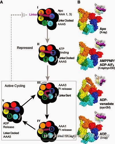 圖說:動力蛋白的結構變化和ATP酶催化循環圖。