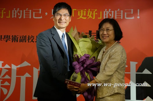 圖說:新書發表會上,陳良基副校長接受夫人獻花。