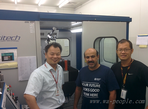 圖說:國研院儀科中心許巍耀研究員(左)、鄭源傑副研究員(右) 與Khaled Abou-El-Hossein教授(中)於儀科中心實驗室合照。