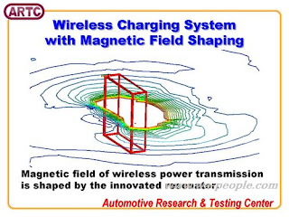 車輛中心為了提高無線充電傳輸效率特別開發出「集中磁場型無線充電」(Wireless Charging System with Magnetic Field Shaping)技術,利用特殊的線圈構形(五面方盒型)設計來集中無線電力傳輸的磁場,並集中於電力傳輸作用區,增加傳輸效率及傳輸距離,大幅減少非磁場作用區之磁場分布,因此可減少電磁干擾影響,並可改善電磁場所產生之高溫現象。該系統的優點為應用功率範圍廣,小至3C、家電產品,大至電動車與電動巴士系統皆能使用。