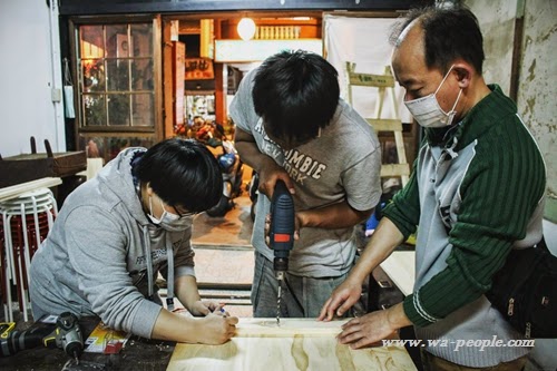 圖說:成員動手學習木工及實作完成空間中的各項傢俱與裝潢。