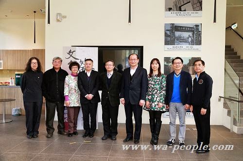 圖說:「文化薈—清華名人手稿文物暨特藏文物發展基金捐贈儀式」完成後,與會來賓合影留念。右起為清華企業家協會蔡能賢、秘書長成群傑、會長廖湘如、成員蔡進步、清大校長賀陳弘、百人會成員張綱維、清華企業家協會副秘書長陸惠慈、清大中文系楊儒賓教授、方聖平教授。