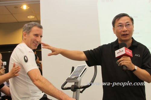 圖說:愛剋智慧科技(AiQ Smart Clothing) 與Intel合作的智慧型車衣,剛在五月底曝光,Jeff Baer也在記者會現場換裝上陣,右為愛剋智慧科技副總經理黃宏旭。