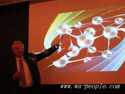 Aart de Geus指出,矽晶到軟體(Silicon to Software)是因應市場需求,並非躁然冒進。他以一個有點像基因鏈的示意圖,解釋Synopsys對軟體越來越重要的看法。他指出,未來許多新的設計,都必須體認軟、硬體互榮共強的必要性,才能在市場獲得最大的成功。軟體的開發,也要像硬體一樣,具有紀律素養,以確保開發出來的軟體,優質可靠、安全無虞;換句話說,輕忽軟體的品質與安全漏洞,極有可能帶來災難性的下場。