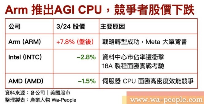 Arm AGI CPU 推出的消息一出,並成功將 Meta 納為首批大客戶,直接威脅到 x86 架構在資料中心 AI 基礎設施中的核心地位,馬上給 Intel 與 AMD 帶來顯著壓力。