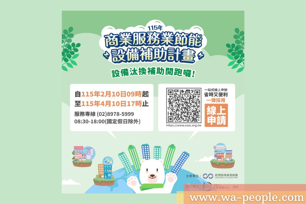 經濟部115年商業服務業節能設備汰換補助將於115年2月10日開放線上申請,有需求的企業屆時可至補助網站提出申請。本年度補助受理至115年4月10日止,經費用罄將提前截止,請企業及早準備相關資料提出申請,以免向隅。