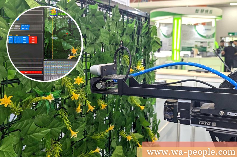 臺灣精緻農業往往都在溫室中栽種,需要耗費非常多人力與時間進行照顧,工研院研發空氣擾動授粉機器人,於農業部高雄區農業改良場進行場域合作驗證,結合影像辨識、導航與滑軌控制,運⽤邊緣運算技術可精準即時辨識需要授粉的農作物,讓農作物在最適當的時間點「瓜熟蒂落」,降低⼈⼒成本、提高效率。