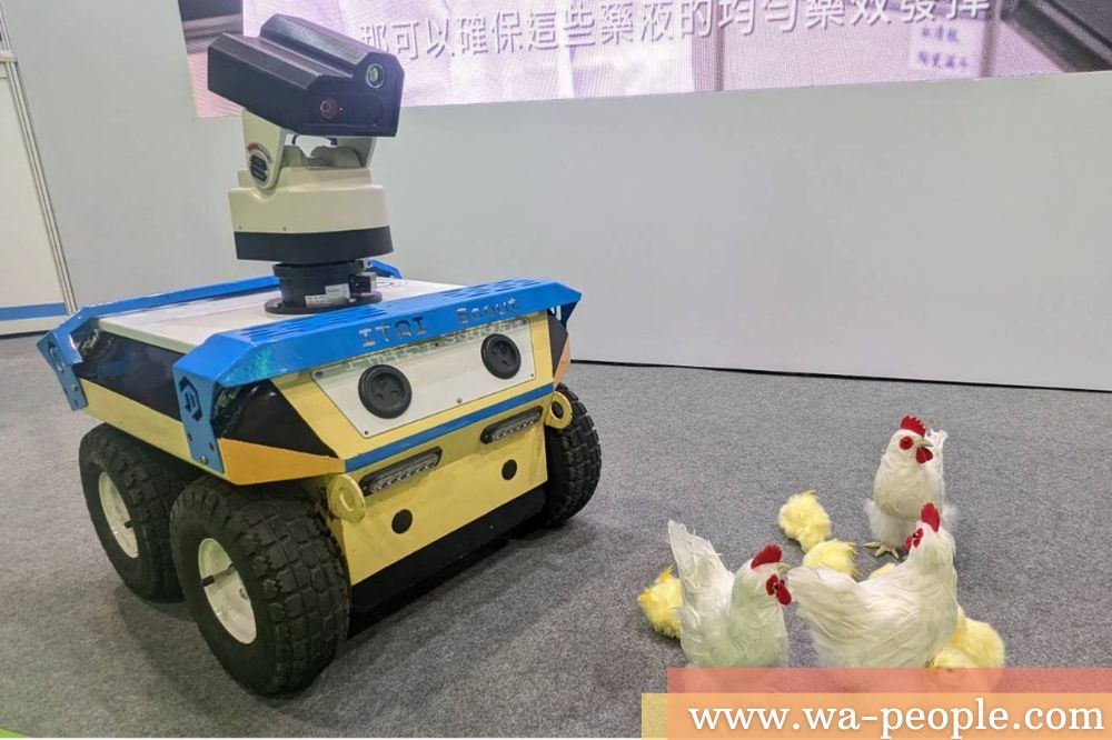 圖說:工研院「雞舍管理巡檢機器人」如同禽類保姆,整合⾃動排程、視覺與導航模組,能即時掌握雞群狀態,避免人員頻繁進出的汙染,進行最有效的管理。