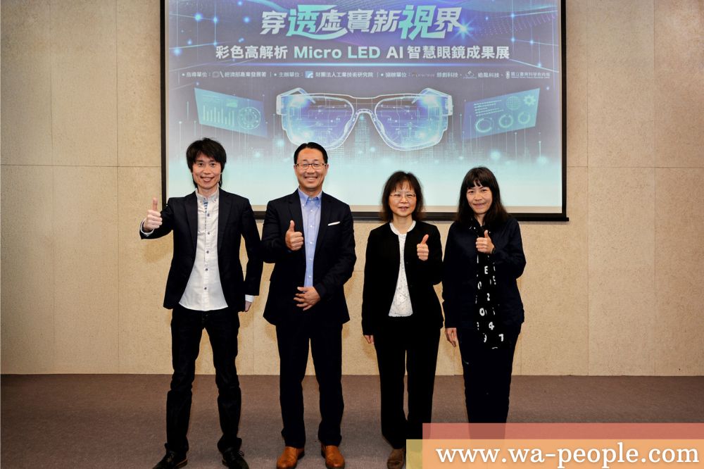圖說:工研院整合AI與5G科技的新世代顯示器技術,攜手錼創顯示科技、追風科技打造出國內首支「彩色高解析Micro LED AI智慧眼鏡」。