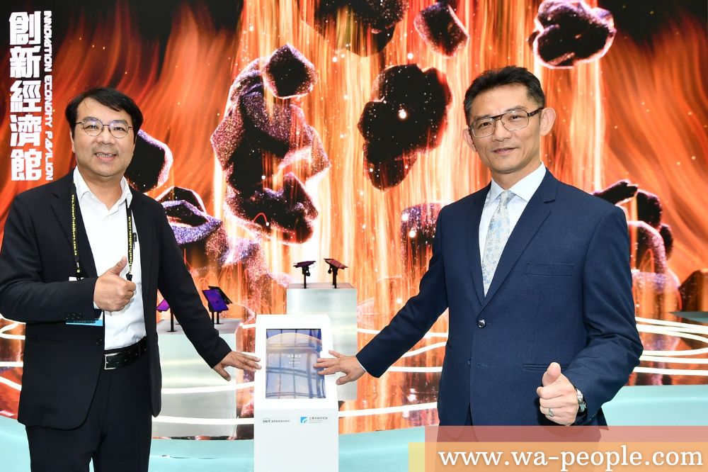圖說:工研院「大阪世博(生命劇場)-虛實互動展演技術」,左起為工研院電子與光電系統研究所組長劉建志、經濟部產業技術司司長郭肇中。