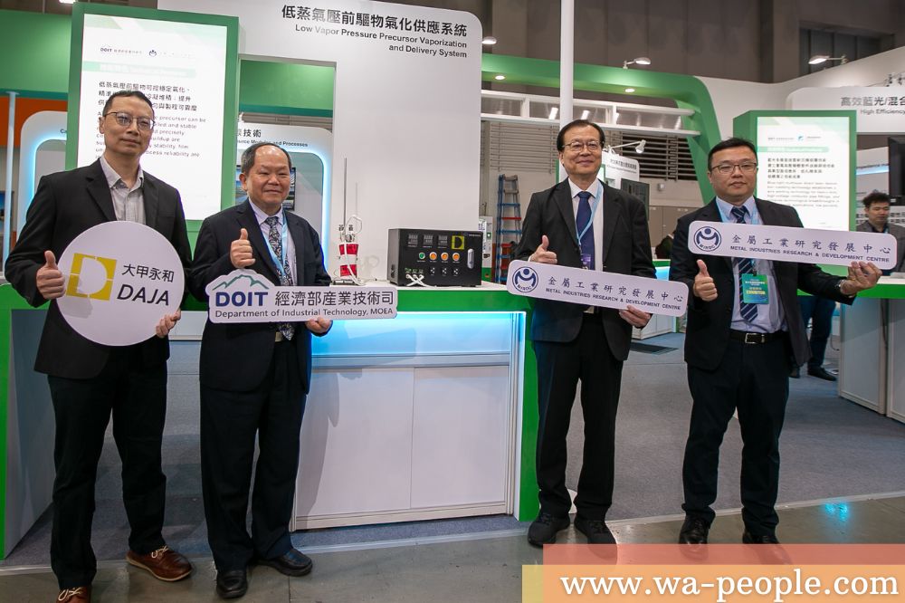圖說:金屬中心開發「低蒸氣壓前驅物氣化供應系統」,為半導體關鍵鍍膜技術帶來重大突破,該技術能穩定輸送氣體,讓鍍膜品質更均勻,已成功吸引大甲永和機械投入開發。左起為大甲永和機械技術長洪嘉檀、經濟部產業技術司副司長周崇斌、金屬中心副執行長林烈全、金屬中心光電技術組組長葉昌鑫。