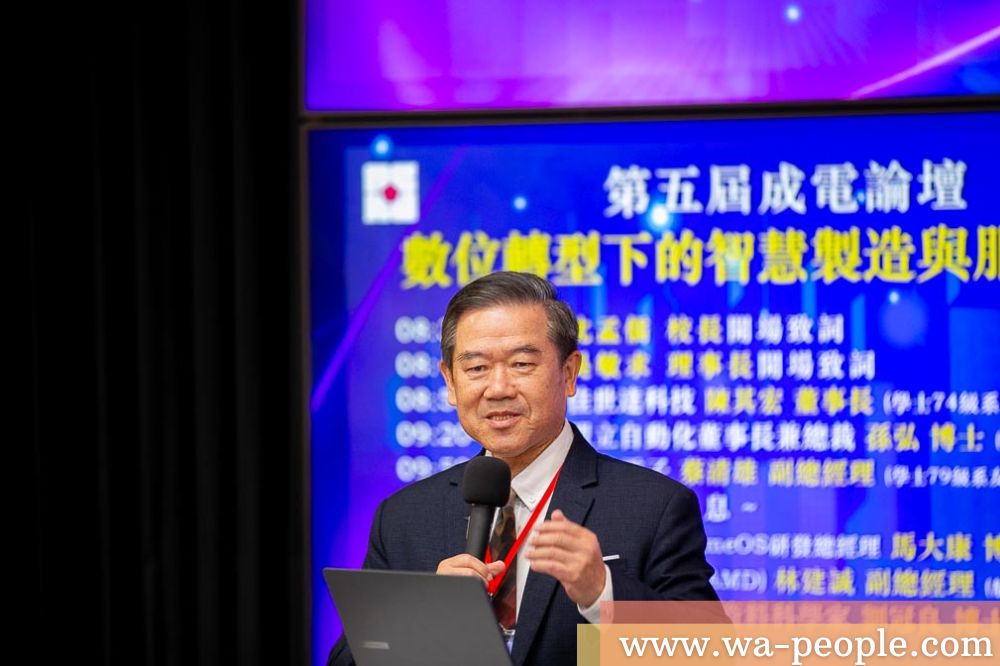 盟立集團董事長兼總裁孫弘(成大機械系 60 級),帶領盟立集團打進半導體供應鏈、AI伺服器、載版等製造現場。他指出,製造業正處於從自動化邁向智慧化的重要契機,並以AI驅動的數位轉型藍圖,分享智慧製造升級的六階段。