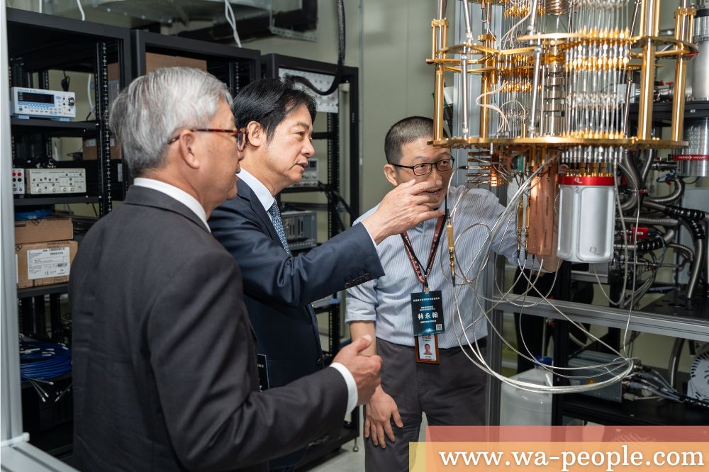 圖說:國科會主委吳誠文(左1)陪同總統賴清德(中)參觀TSRI超導量子計算實驗室。