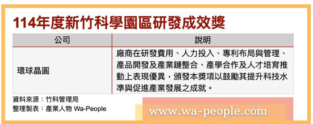 圖說:竹科管理局胡世民局長(右)與114年度新竹科學園區研發成效獎獲獎公司環球晶圓(左)。