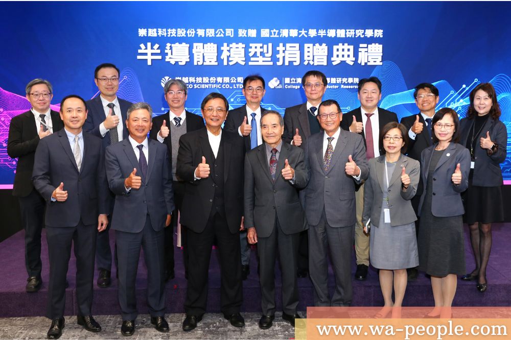 為強化台灣半導體人才培育與前瞻研究能量,崇越科技今(16)日於台北內湖總部捐贈三座半導體模型予國立清華大學半導體研究學院,協助教學展示與研究推廣。同時,由崇越科技董事長潘重良與清華半導體研究學院院長─被譽為「浸潤式微影之父」的林本堅共同簽署合作意向書,宣布雙方將展開更深度的產學鏈結,攜手培育下一代高階半導體科技人才。